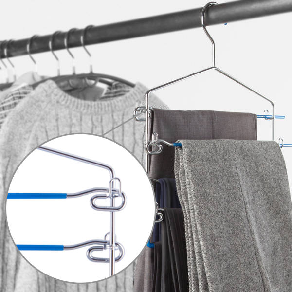 이 제품을 활용하면 좁은 옷장에서 바지를 효율적으로 관리할 수 있다.